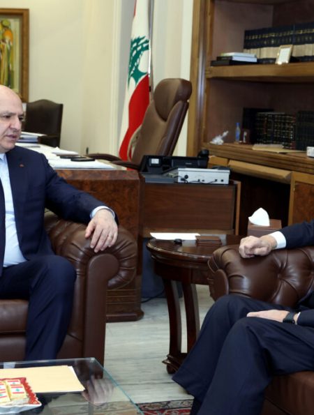 خلوة في هذه الأثناء بين الرئيس جوزاف عون ورئيس الوزراء المصري مصطفى مدبولي في قصر بعبدا ديسمبر 19, 2025