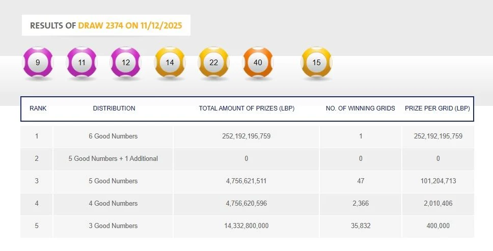 وبلغت قيمة الجائزة أكثر من 252 مليار ليرة، أيّ 2.8 مليون دولار
