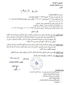صدر عن وزير الداخلية والبلديات أحمد الحجار قرار بشأن منع شركات ومؤسسات ومعارض وتجار وكلّ جهة تُعنى ببيع الدراجات الآلية و/أو الـATV الجديدة منها و/أو المستوردة المستعملة في لبنان، تسليم أي دراجة قبل تسجيلها أصولًا لدى المصلحة المختصة في هيئة إدارة السير والآليات والمركبات وإلزامها بتسليم خوذة للجهة الشارية.