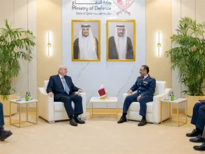 في إطار مشاركته على رأس وفدٍ عسكري في معرض الدوحة الدولي للدفاع البحري (DIMDEX 2026)، التقى وزير الدفاع الوطني اللواء ميشال منسى صاحب السمو الشيخ تميم بن حمد آل ثاني، أمير دولة قطر والقائد الأعلى للقوات المسلحة القطرية، كما التقى عددًا من كبار المسؤولين المشاركين في المعرض، ومن بينهم وزير الدفاع العراقي ثابت محمد سعيد العباسي، ورئيس أركان القوات المسلحة القطرية الفريق الركن جاسم بن محمد المناعي، والفريق أحمد خليفة رئيس أركان حرب القوات المسلحة المصرية.