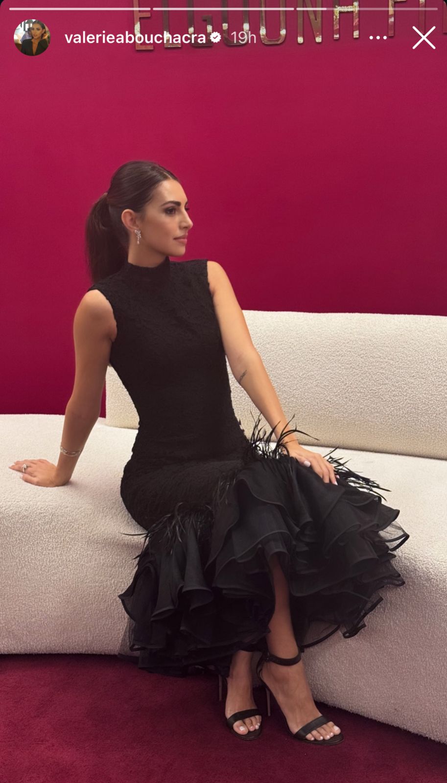 ظهرت ملكة جمال لبنان السابقة، فاليري أبو شقرا، في إطلالة أنيقة وجذابة بفستان أسود مميز يتميز بطبقات من “الكشكش” وتفاصيل الريش عند الأطراف، ما أضفى عليها لمسة من الفخامة والرقي.